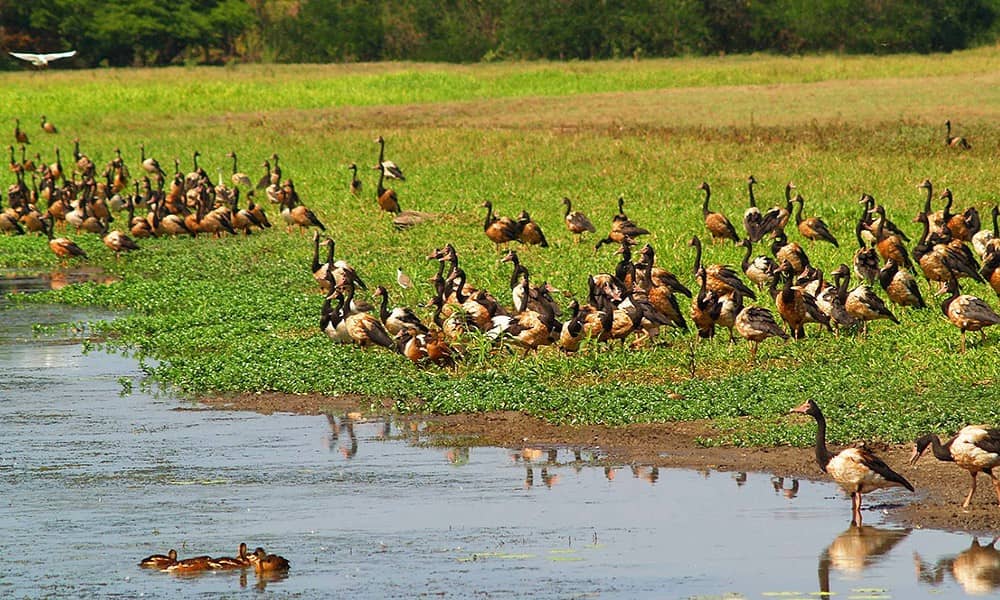 Today you enjoy a morning cruise on the famous Yellow Waters, abundant with many species of birds and the mighty saltwater crocodile. We then travel across the floodplains of the South Alligator River and further through Kakadu National Park to Bark Hut at Annaburroo where we take a short break. From here we head off to the small village of Corroboree before heading off the main road and travel through the Marrakai region crossing the Alligator River viewing Lake Bennett. We then make our way to Batchelor in the Litchfield National Park for our overnight stay.