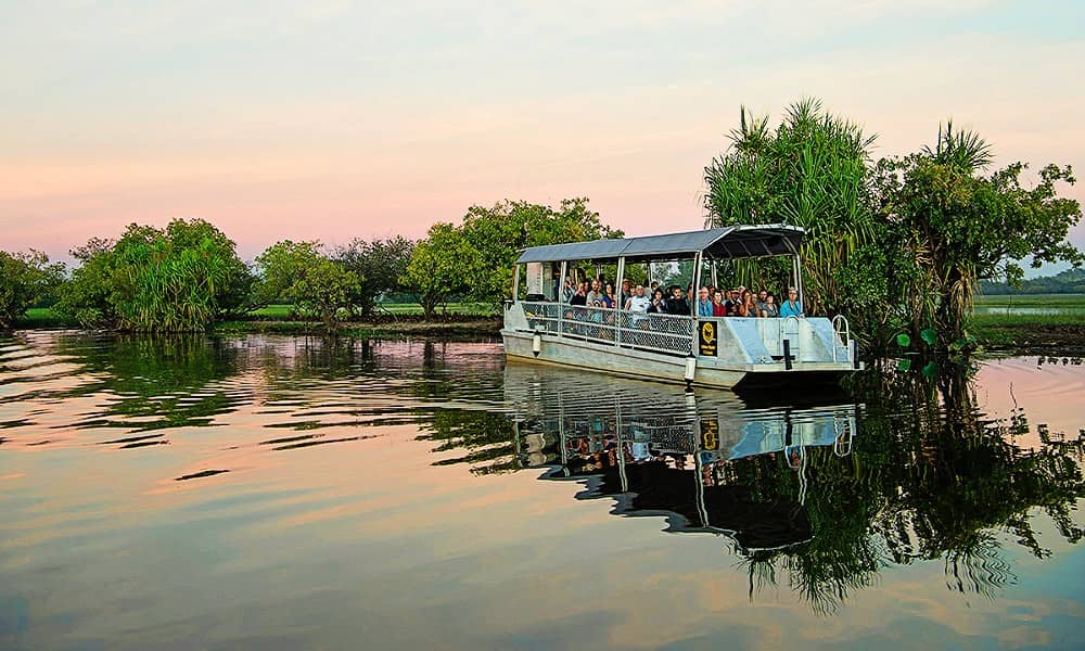 After an early start, we continue north with our first stop being Nitmiluk National Park where we take a cruise down the beautiful and rocky, Nitmiluk Gorge (Katherine Gorge). Nitmiluk is an Aboriginal word meaning ‘cicada dreaming’. From here it’s onto Edith Falls and time for a swim before lunch. The afternoon’s drive takes us through Pine Creek where we look over the gold mine and troubled north-south railway. Venturing further to Adelaide River, we take time to wander through the World War 2 Cemetery and Museum. Adelaide River was home to around 30,000 soldiers during the Second World War and many of those lost during the Japanese bombing of Darwin are buried here. Leaving Katherine, we head to The Kakadu National Park for our next two nights. This area is filled with spectacular scenery, pristine wetlands, billabongs, birdlife and wildlife.